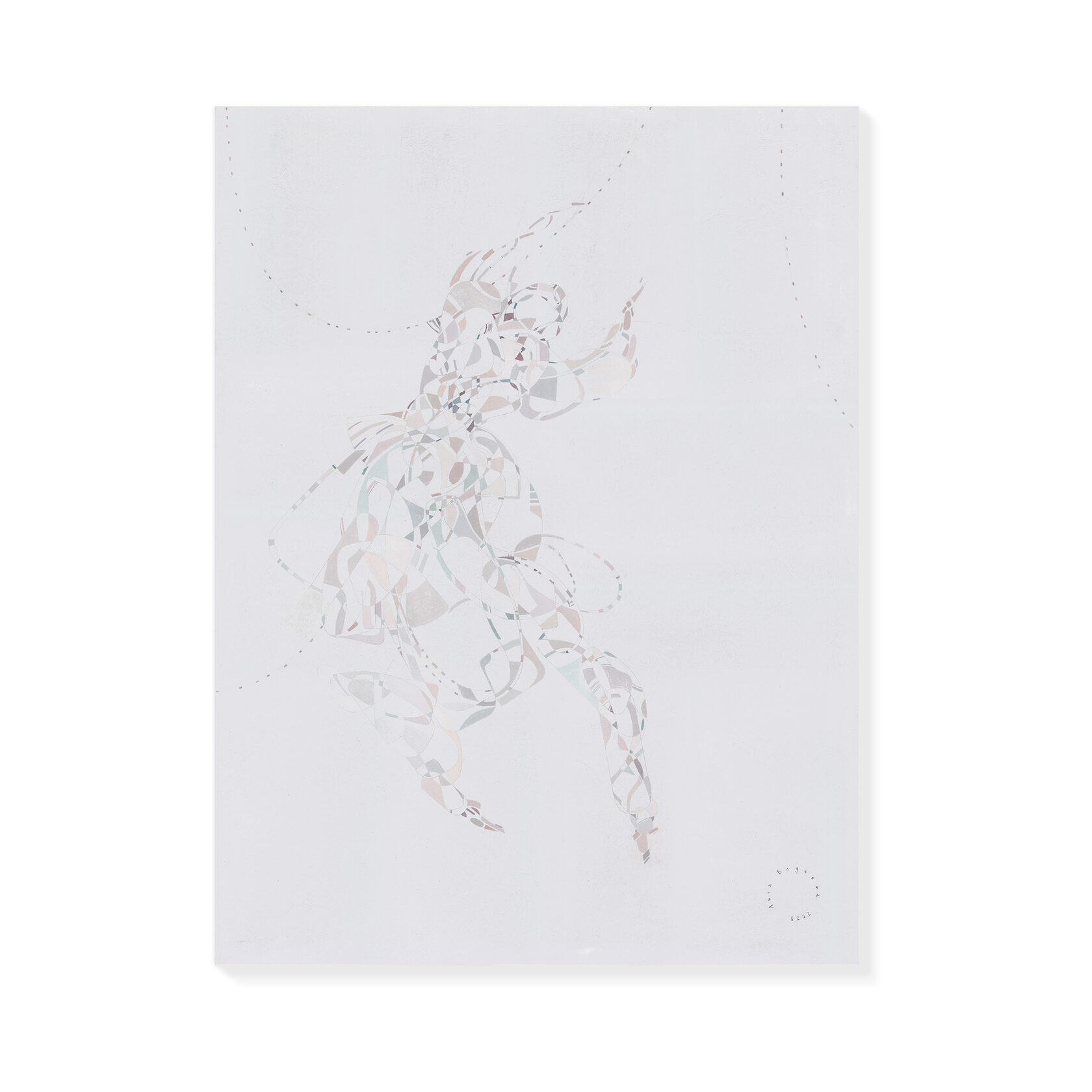 120 х 90 см. 7 работ Балет «Шахерезада 1,2,3,4,5,6,7», созданные как абстрактные живописные эскизы танцовщиков в движении. В них геометрия становится ультра-пластичной, нежной. Выполнены на негрубой текстуре и фон уведен практически в единое пятно, отдавая все внимание пластике танца. Работа написана на холсте, на галерейном подрамнике, подписана автором с фронтальной и обратной стороны холста. Крепеж в комплекте.