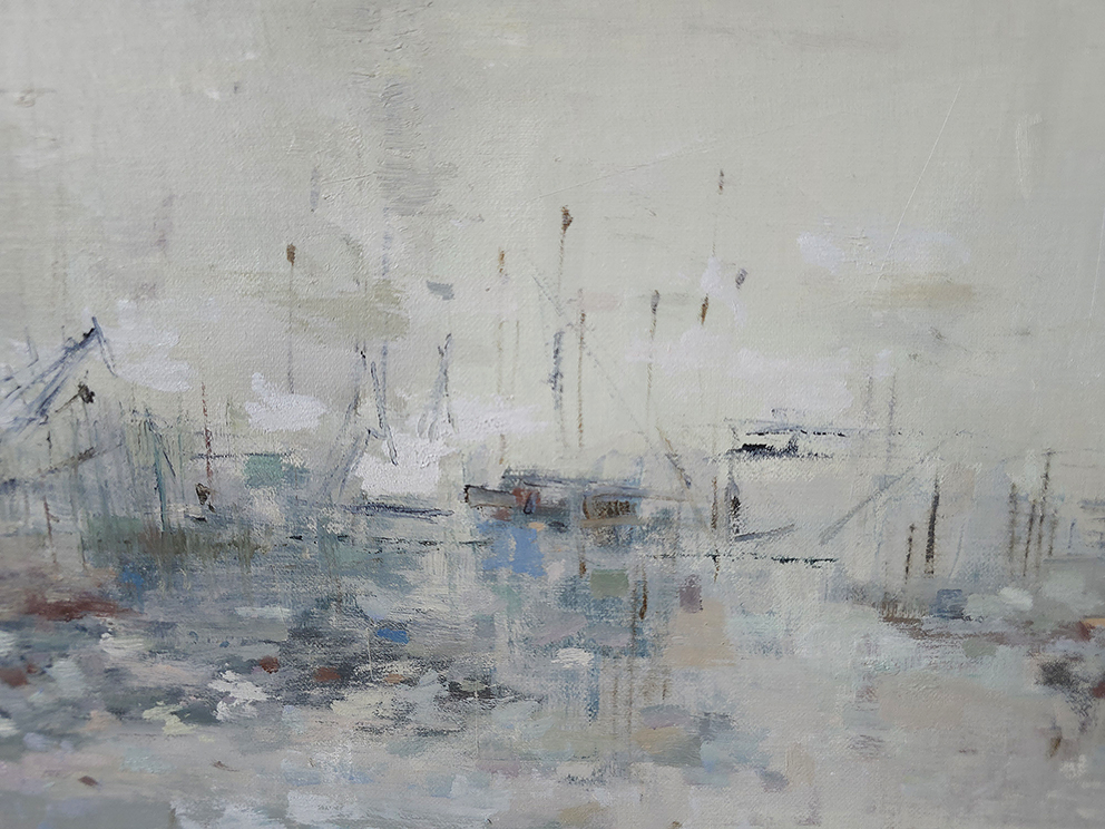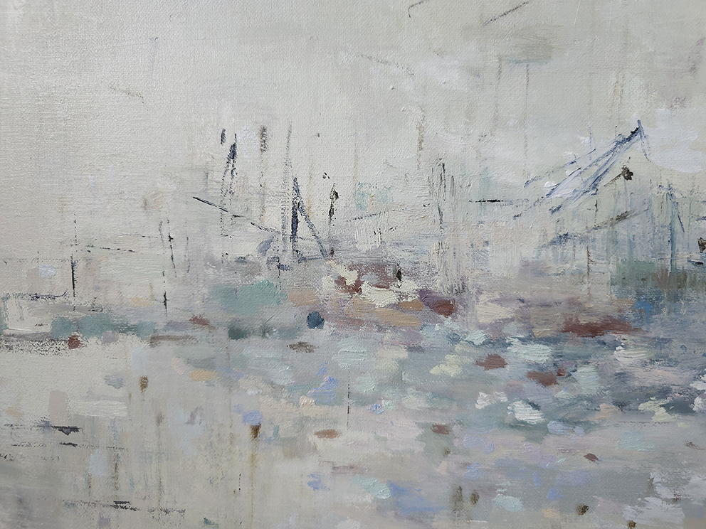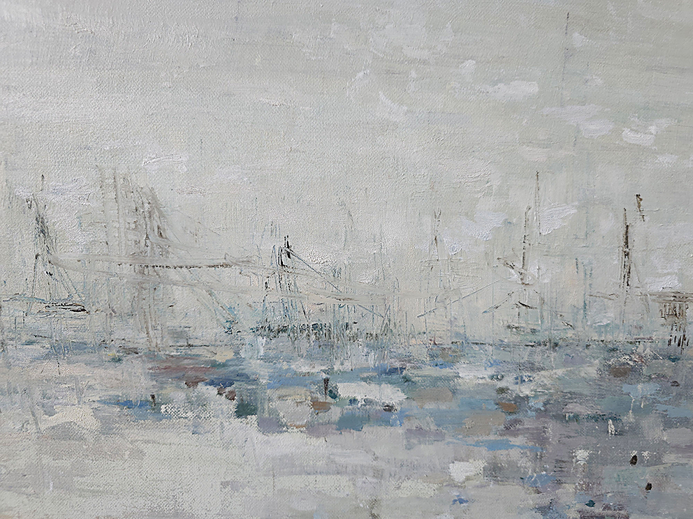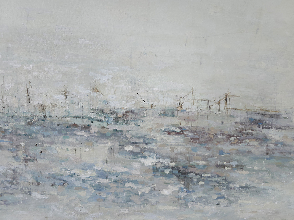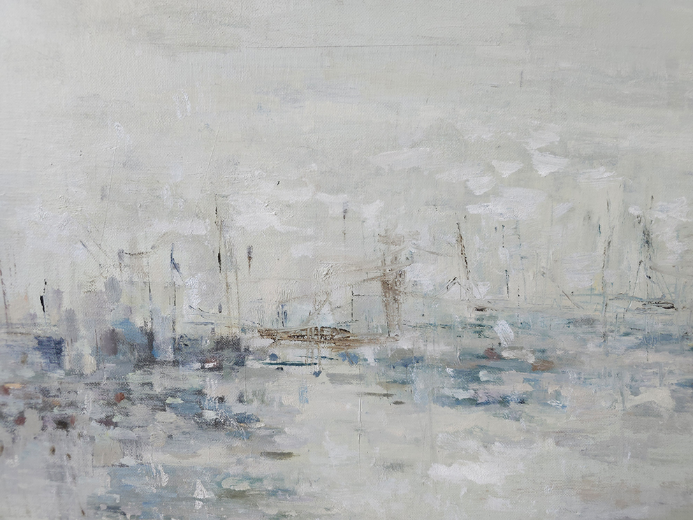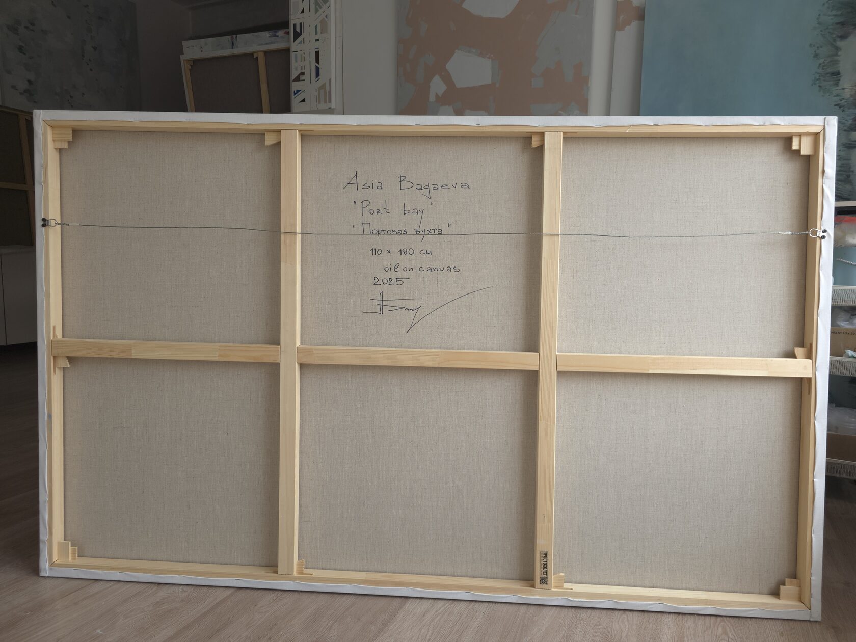 110 х 180 x 3.5 см холст / масло Абстрактный морской пейзаж "Портовая бухта" выполнен в духе и манере импрессионизма. Картина подписана автором с фронтальной и обратной стороны холста. Работа выполнена на галерейном подрамнике, на льняном холсте, 2025 г.