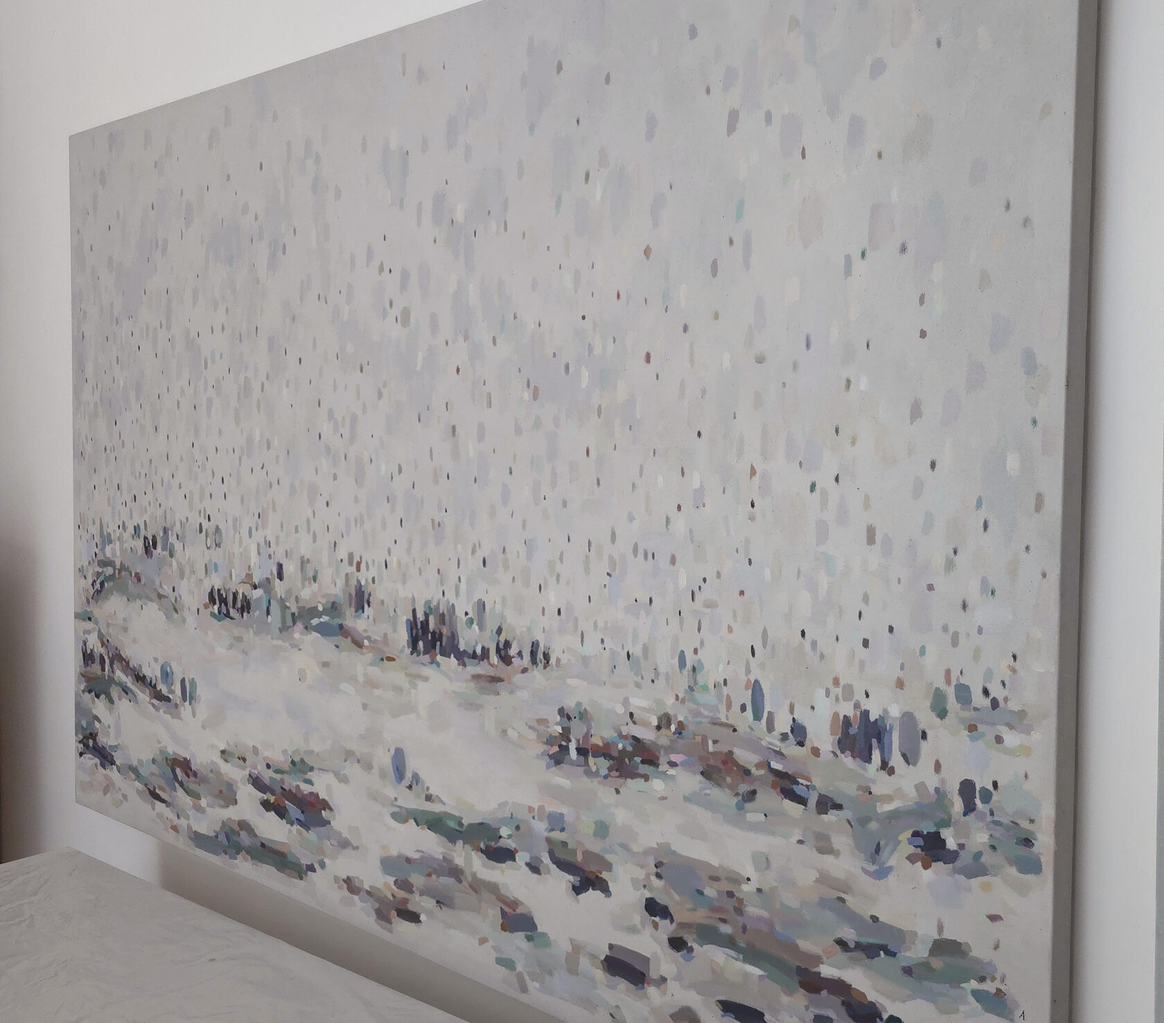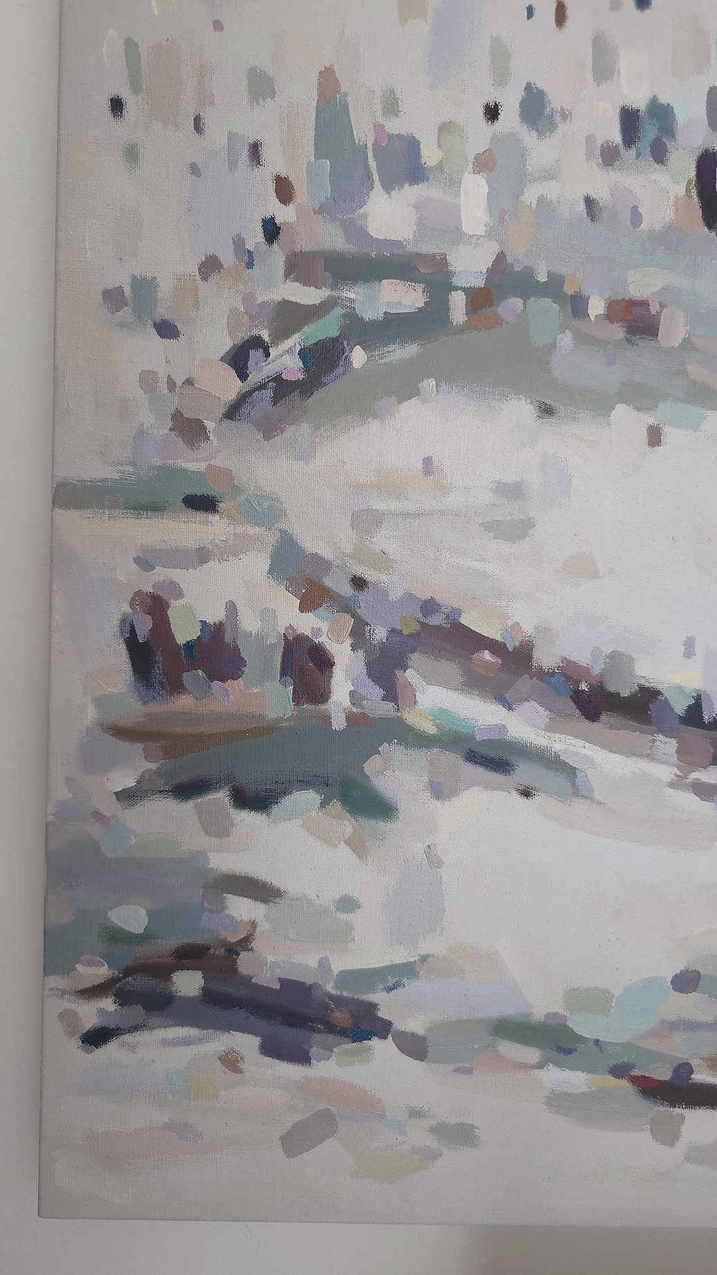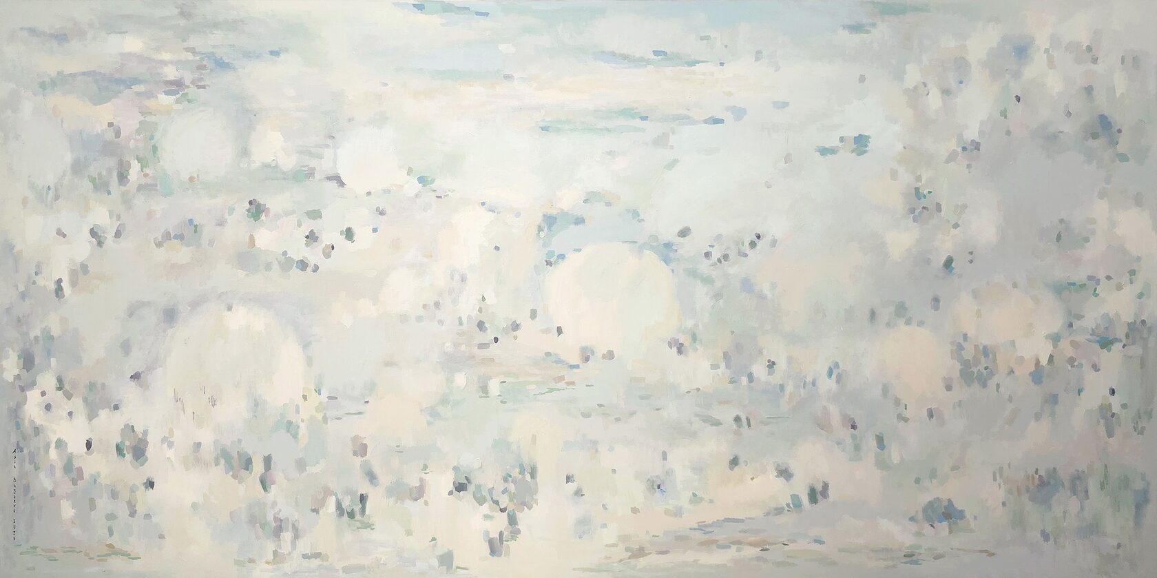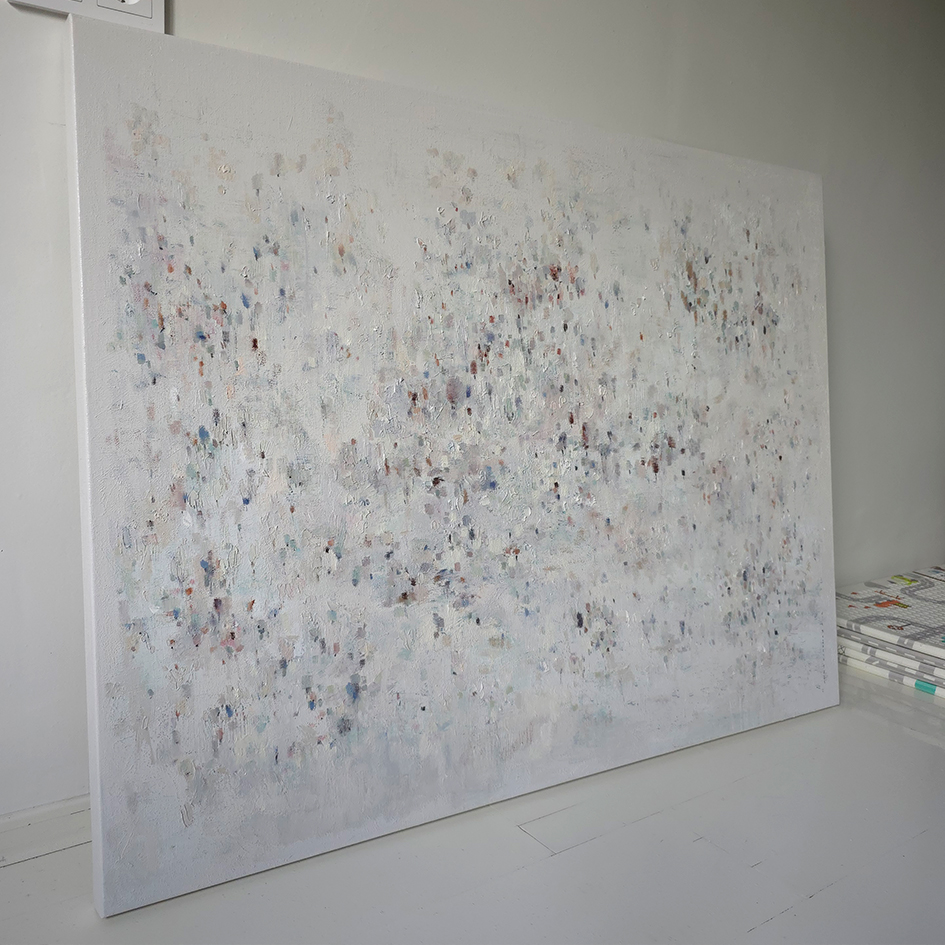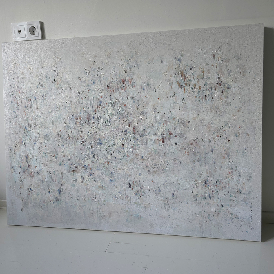 120 х 180 x 3.5 см холст / масло Абстрактный пейзаж 2025 г. "На рассвете " является частью серии "Сохраняя природу", выполнен в нежных оттенках, без главного акцента композиции. Спокойная, умиротворяющая тишина ! Работа выполнена на галерейном подрамнике, на льняном холсте, подписана автором с фронтальной и обратной стороны холста.