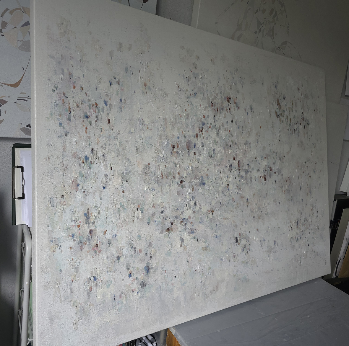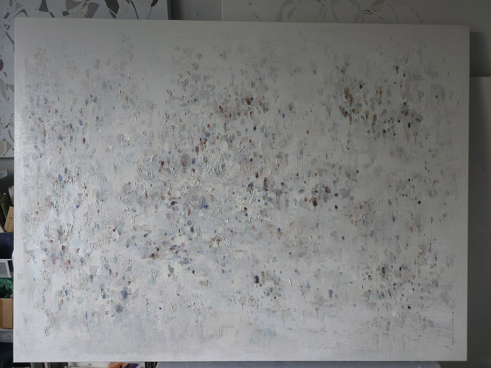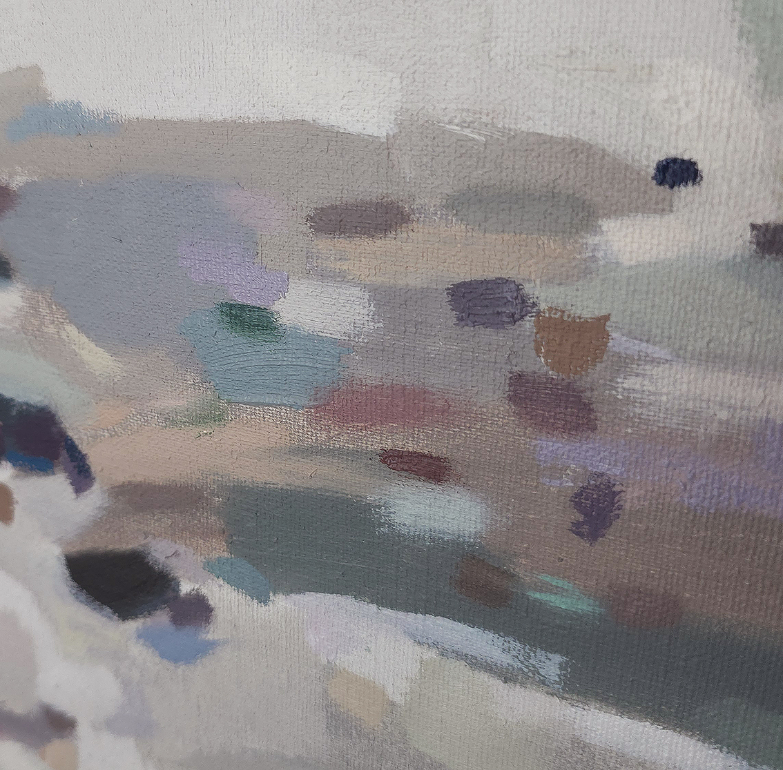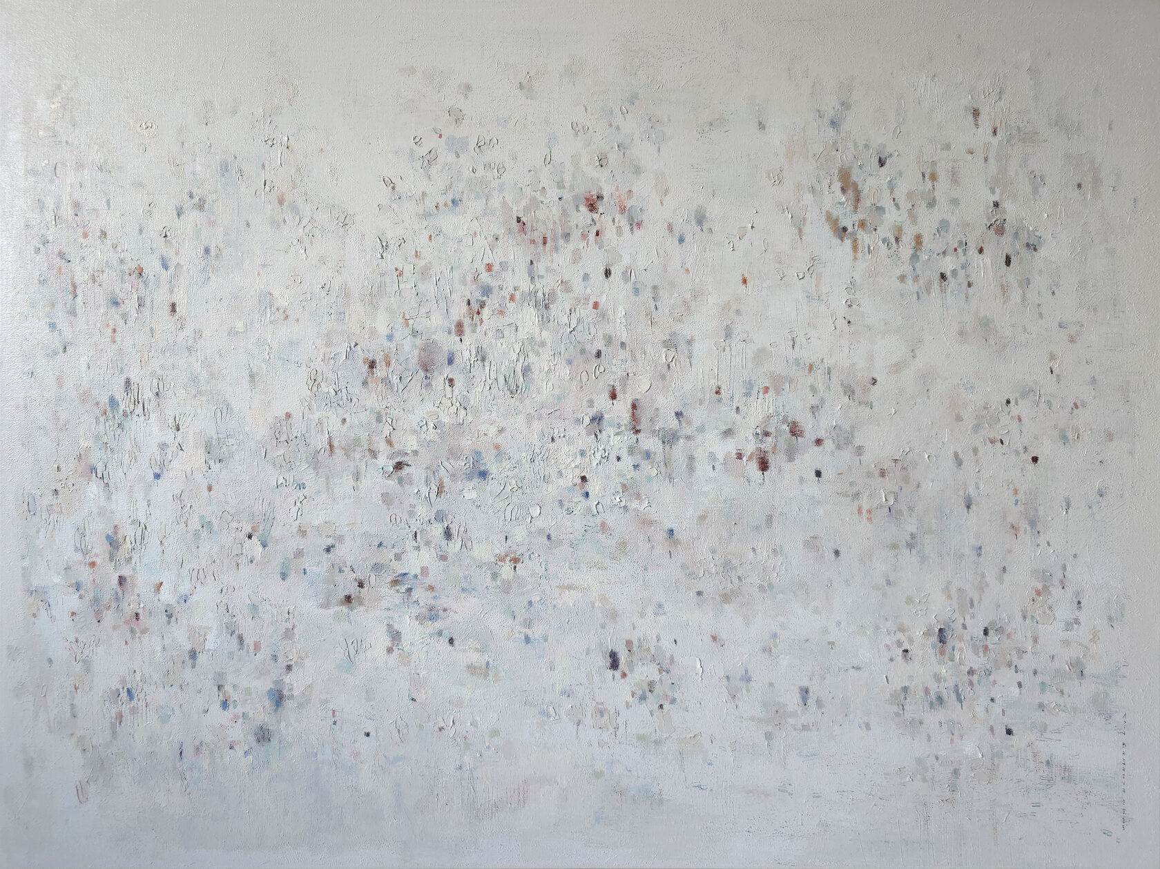 120 х 180 x 3.5 см холст / масло Абстрактный пейзаж 2025 г. "На рассвете " является частью серии "Сохраняя природу", выполнен в нежных оттенках, без главного акцента композиции. Спокойная, умиротворяющая тишина ! Работа выполнена на галерейном подрамнике, на льняном холсте, подписана автором с фронтальной и обратной стороны холста.