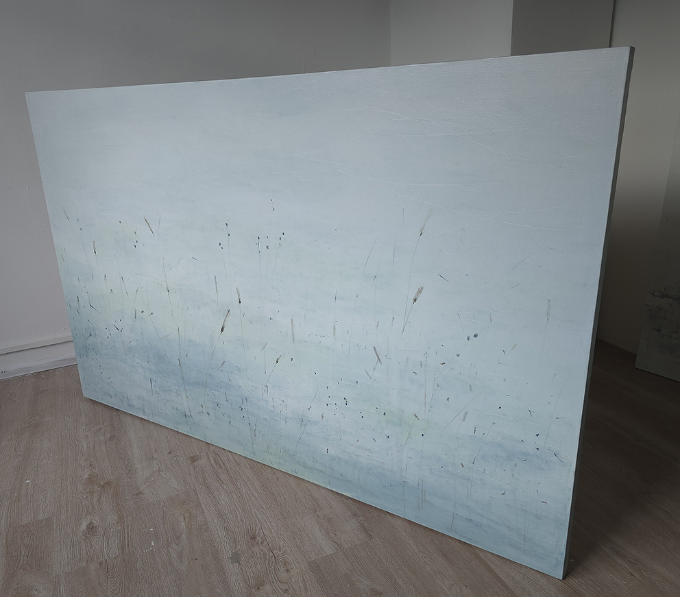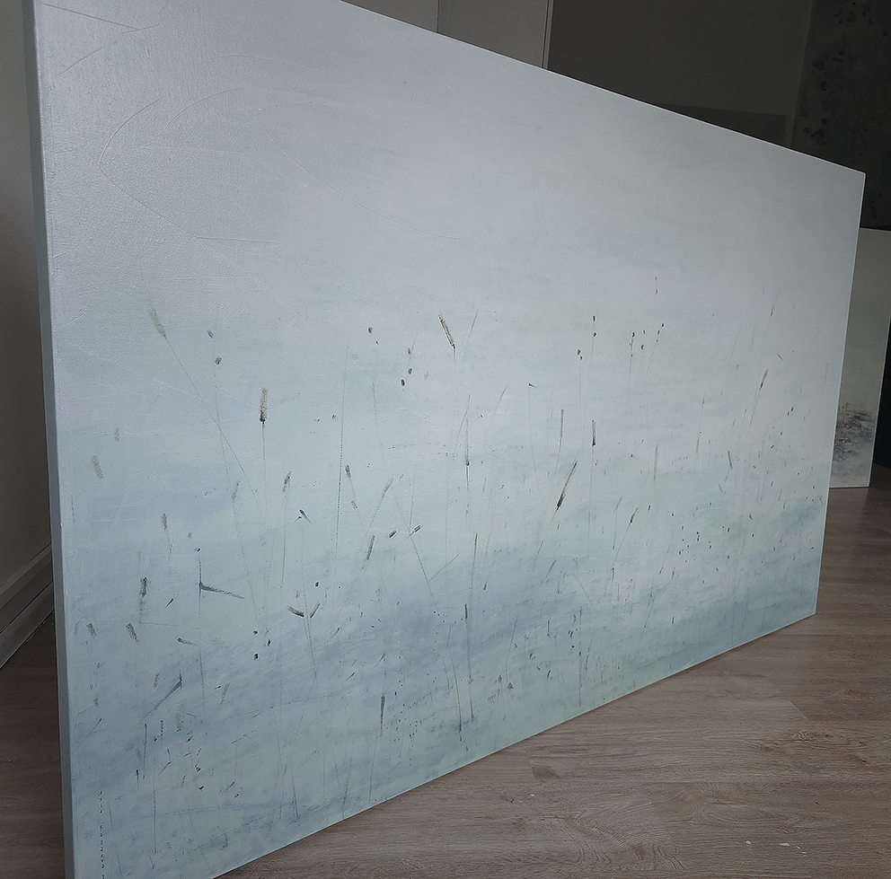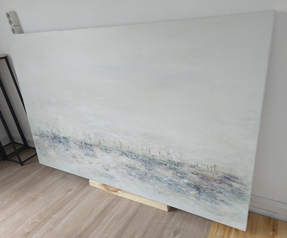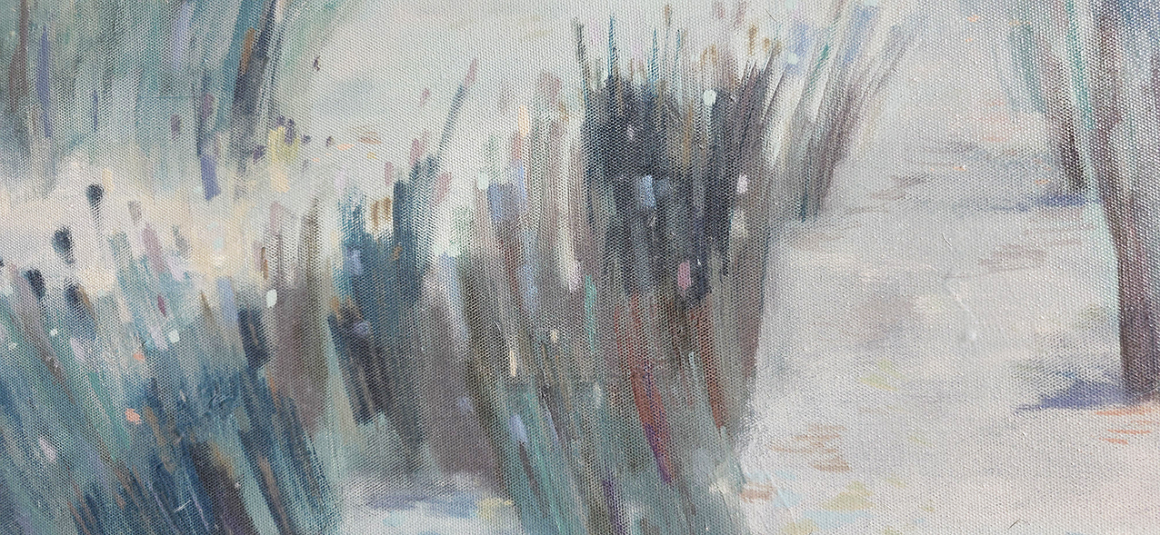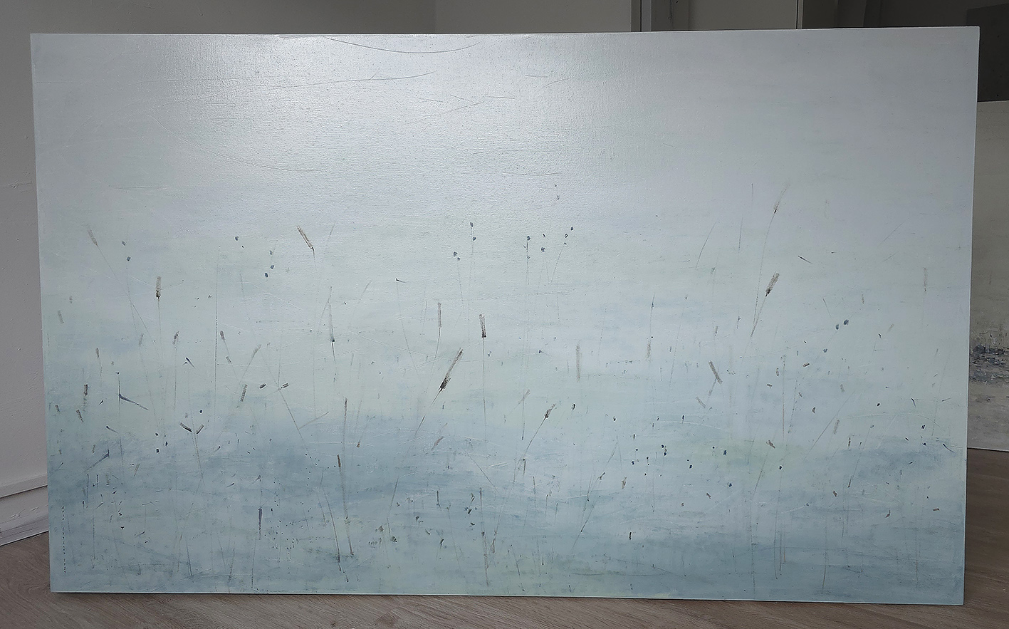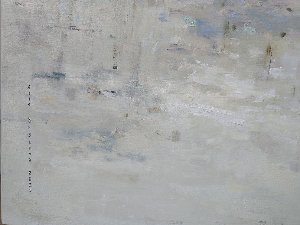 90 х 120 x 3.5 см холст / масло Абстрактный пейзаж 2025 г., выполнен в нежных оттенках, поле с засохшими травинками в зимний период. Работа выполнена на галерейном подрамнике, на льняном холсте, подписана автором с фронтальной и обратной стороны холста.