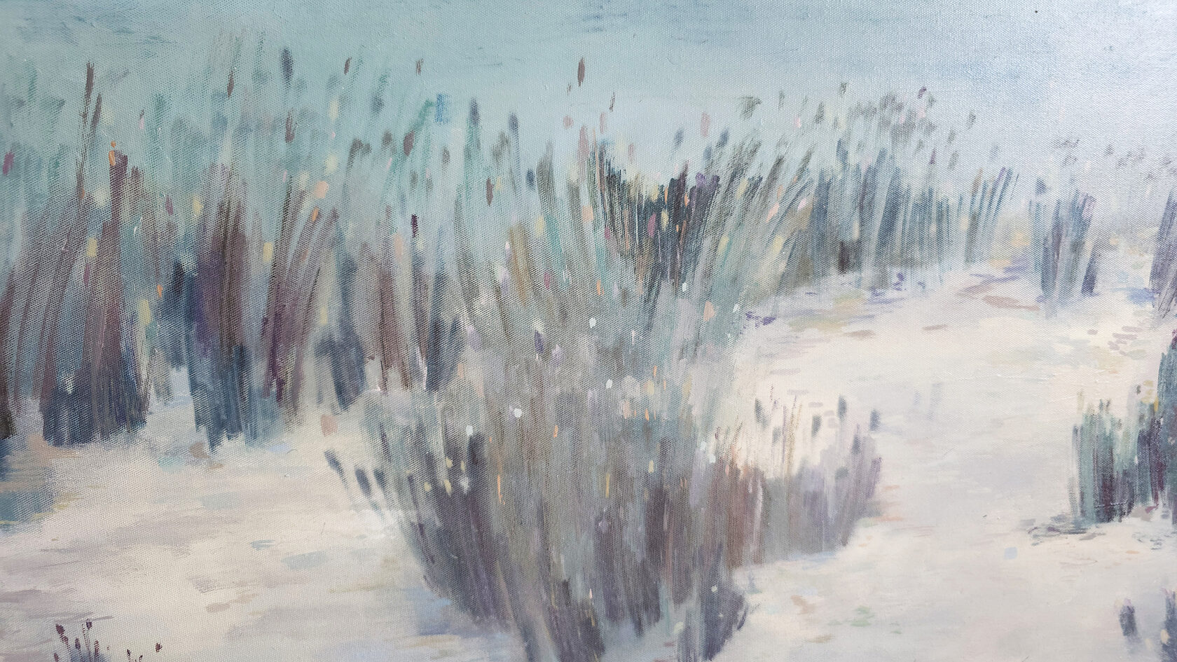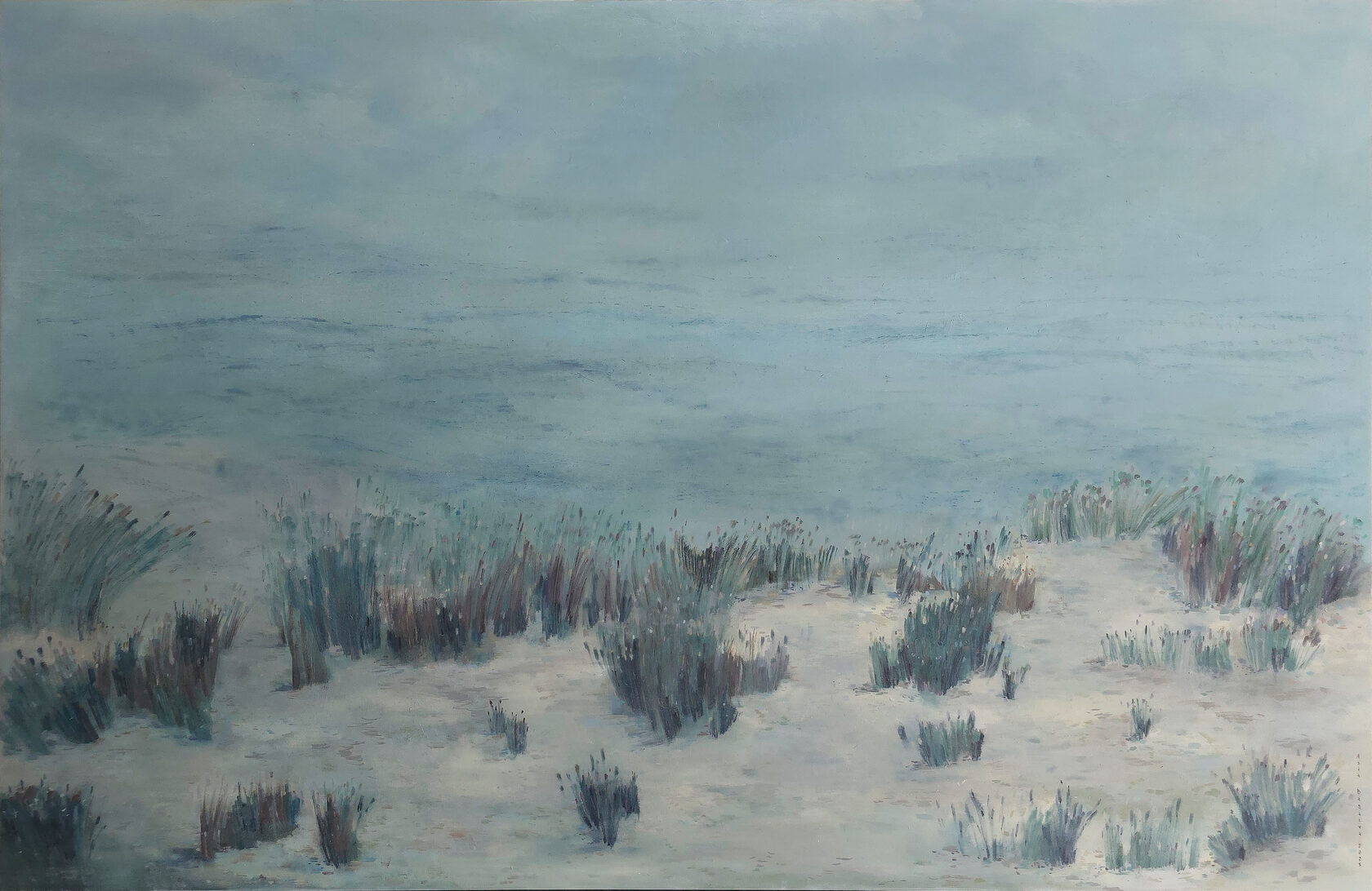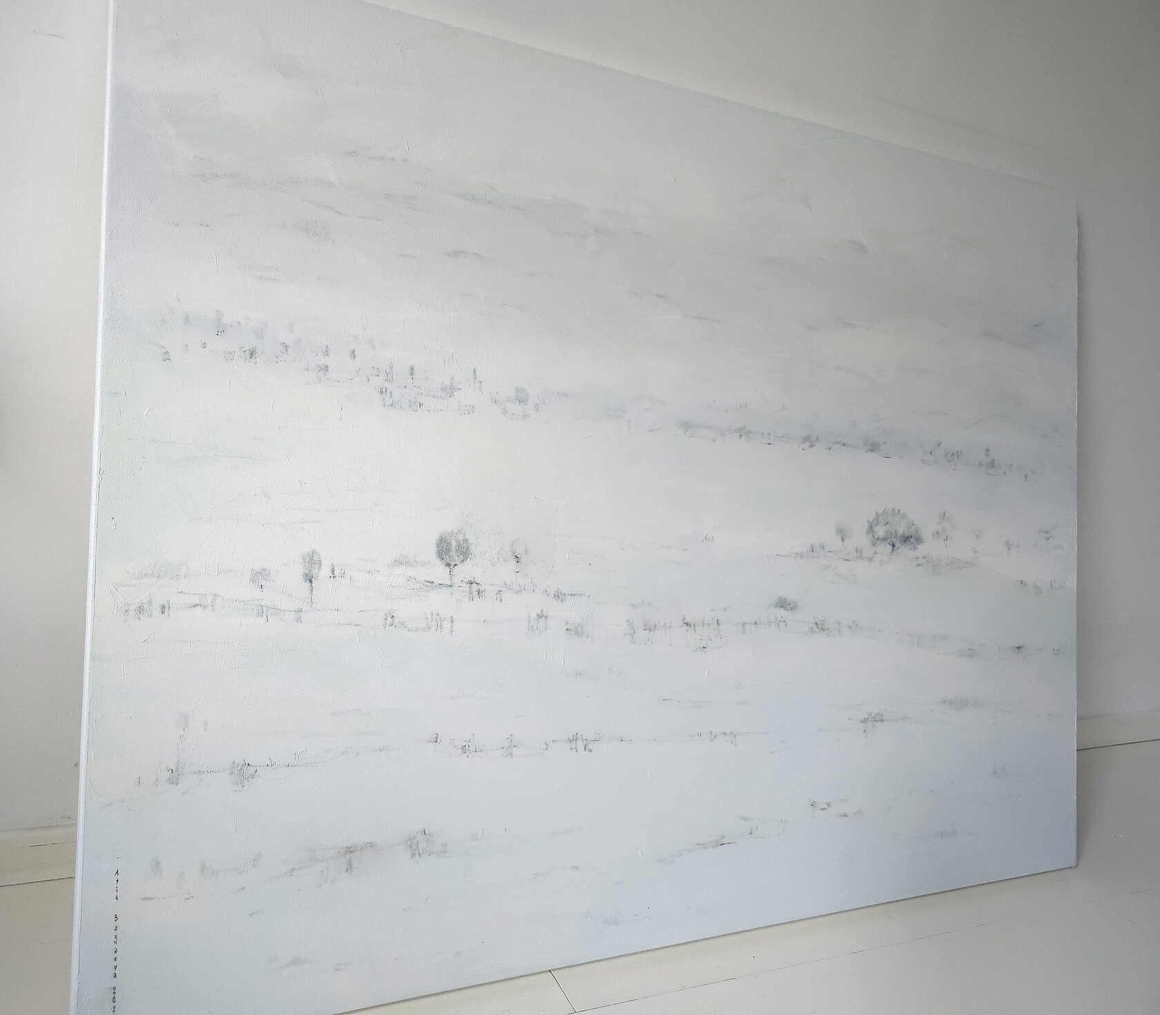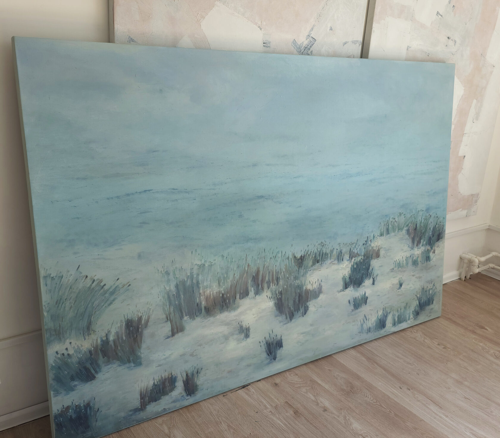 90 х 120 x 3.5 см холст / масло Абстрактный пейзаж 2025 г., выполнен в нежных оттенках, поле с засохшими травинками в зимний период. Работа выполнена на галерейном подрамнике, на льняном холсте, подписана автором с фронтальной и обратной стороны холста.