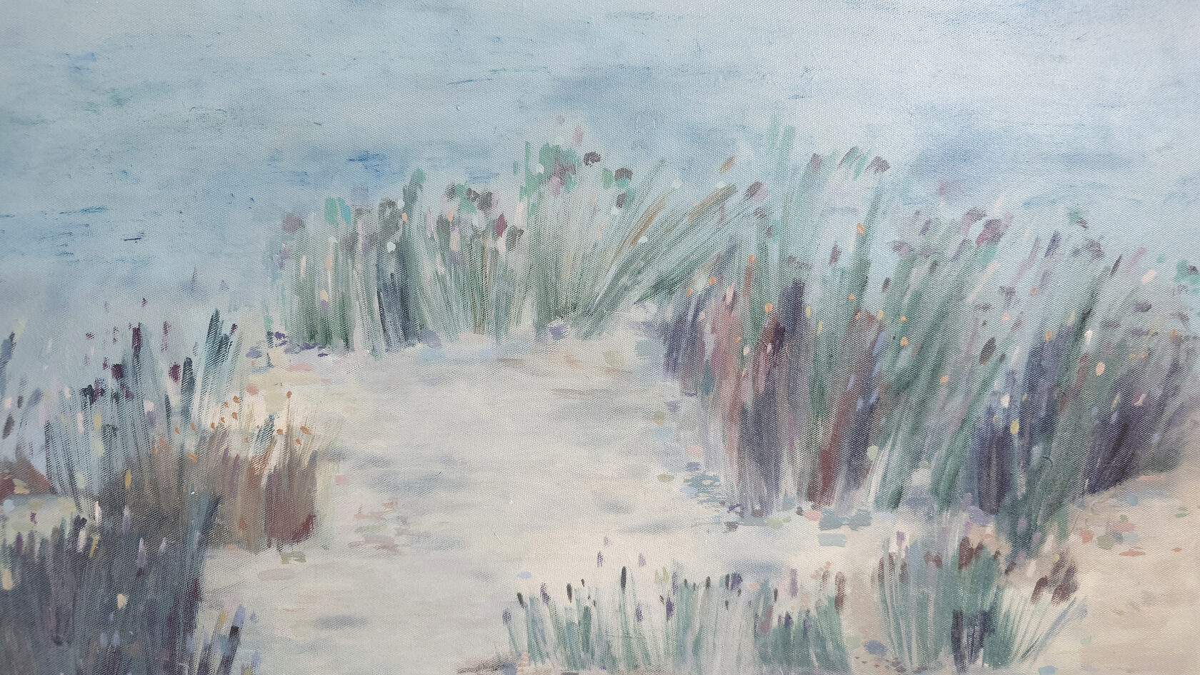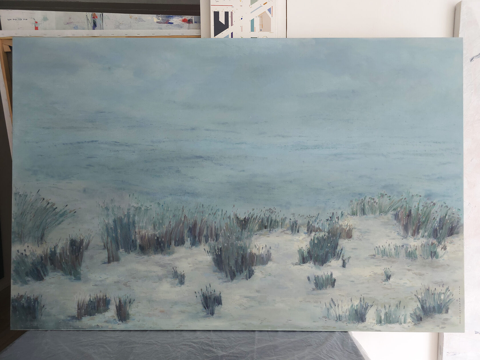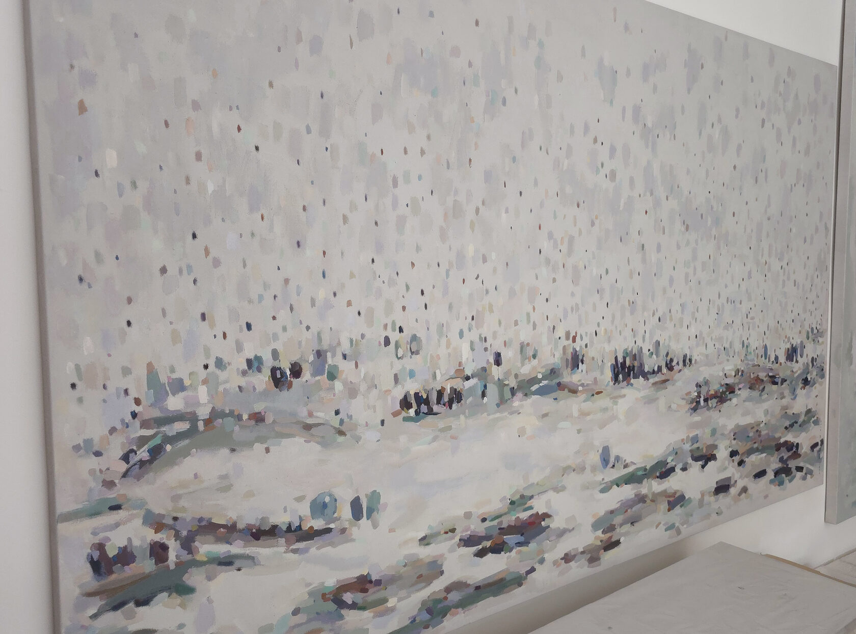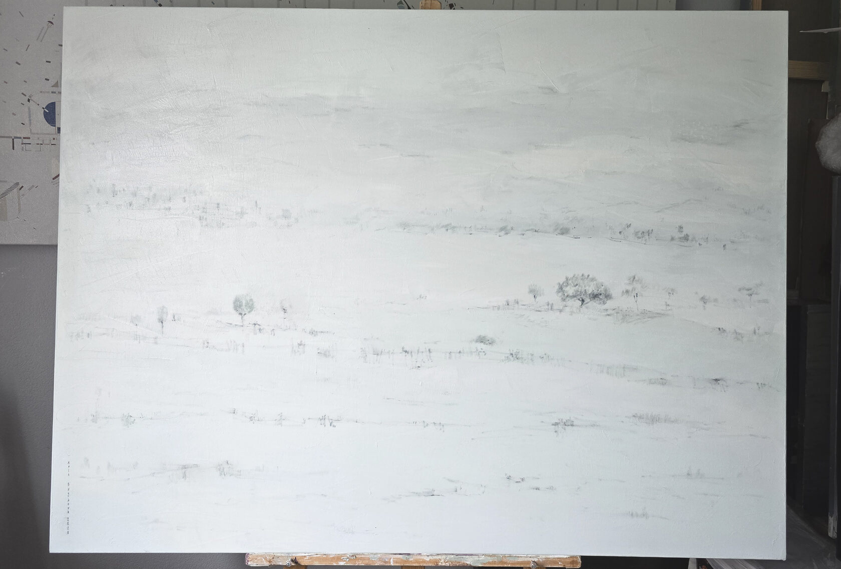 90 х 120 x 3.5 см холст / масло Абстрактный пейзаж 2025 г., выполнен в нежных оттенках, поле с засохшими травинками в зимний период. Работа выполнена на галерейном подрамнике, на льняном холсте, подписана автором с фронтальной и обратной стороны холста.