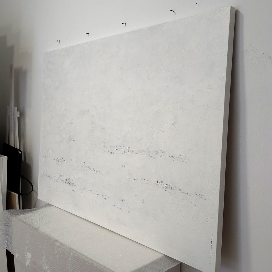 120 х 180 x 3.5 см холст / масло Абстрактный горный пейзаж в стиле минимализм, вдохновлена японской живописью. Композиция выполнена в авторской многослойной технике, с глубокой текстурой. Картина подписана автором с фронтальной и обратной стороны холста. Работа выполнена на галерейном подрамнике, на льняном холсте, 2025 г., крепеж в комплекте.