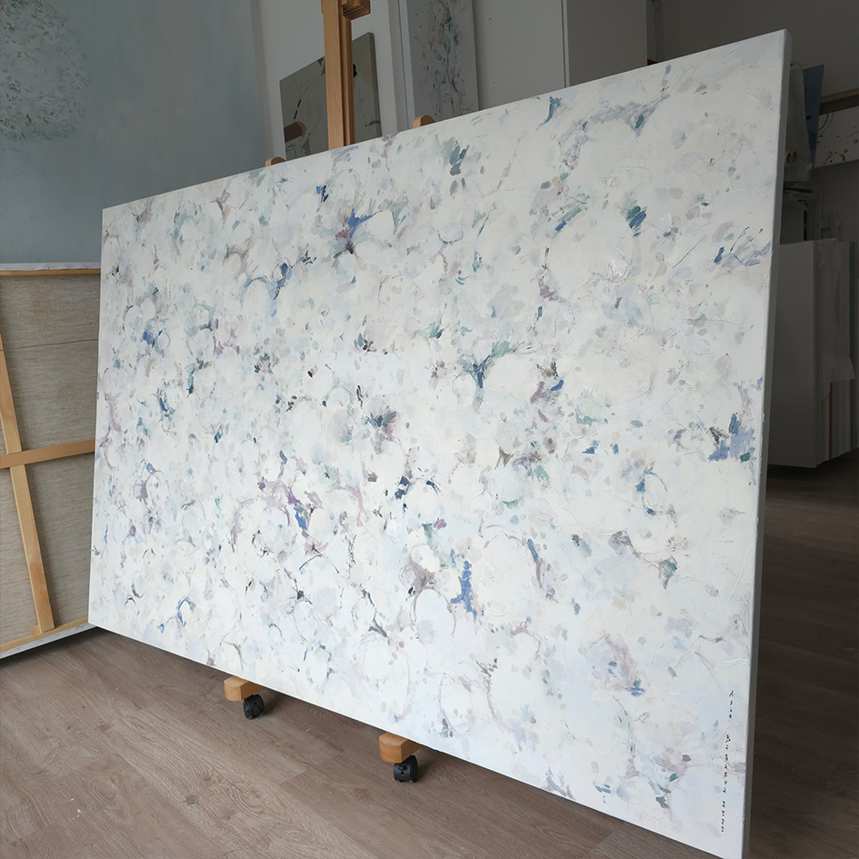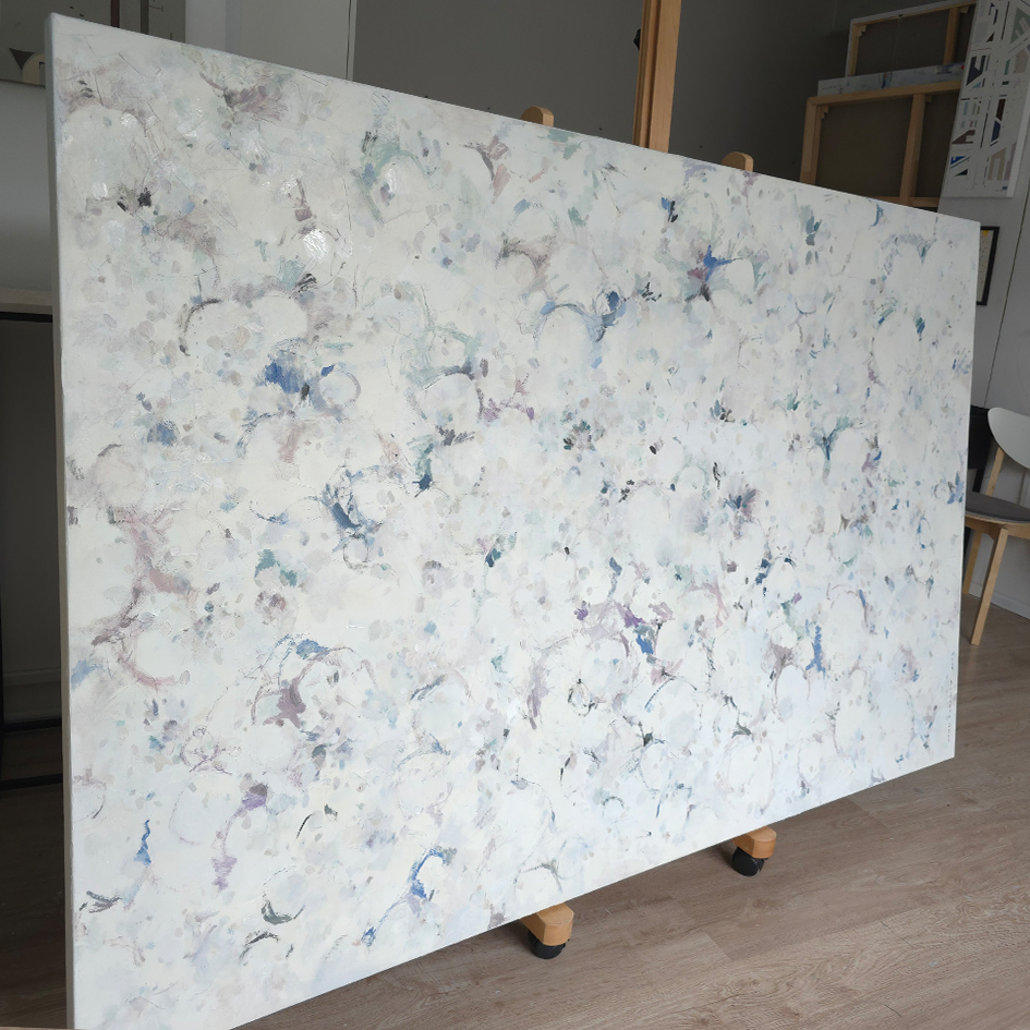 130 х 200 x 3.5 см холст / масло Абстрактная чувственная растительная композиция, цветение в саду, 2025 г. Работа выполнена на галерейном подрамнике, на холсте, подписана автором с фронтальной и с обратной стороны холста, торцы окрашены, подвес в комплекте.