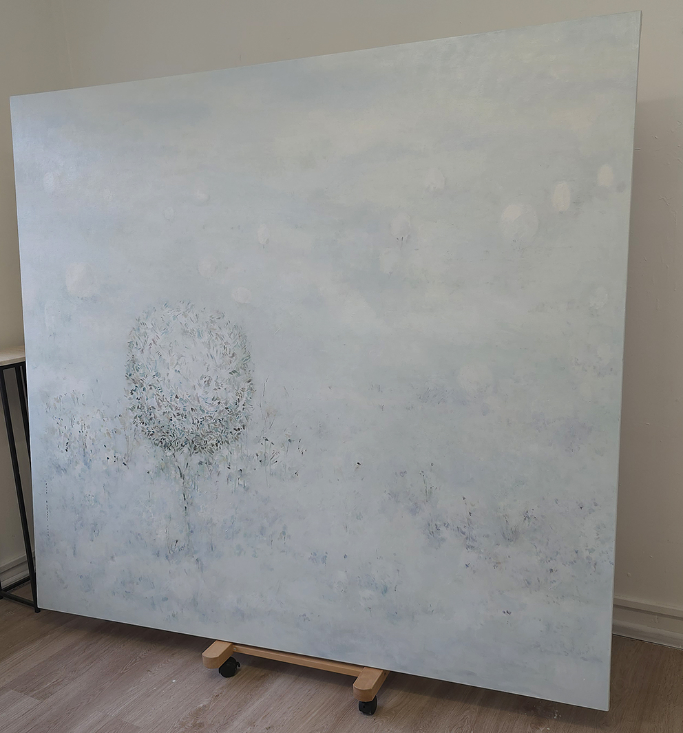 100 х 100 x 3.5 см холст / масло Абстрактная растительная композиция, посвященная теме сохранения чистоты и природной целостности, 2023 г. Выполнена на льняном холсте и галерейном подрамнике 3,5 см. Подписана автором с фронтальной и с обратной стороны холста.