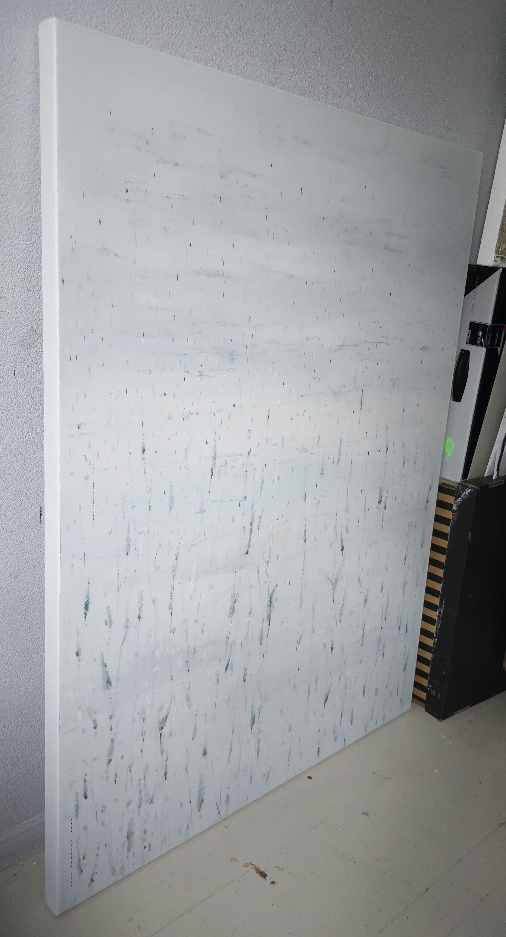 Абстрактнная композиция, прохладное утро в японском саду, 2021г. Работа выполнена на галерейном подрамнике, на льняном холсте, торцы окрашены (оформление в багет не требуется). Подписано автором в правом нижнем углу с фронтальной стороны и с обратной стороны холста. Крепеж для подвеса в комплекте.