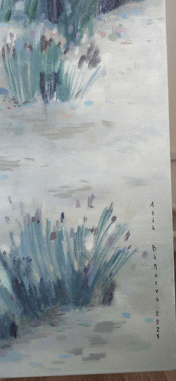 Работа выполнена на холсте в 2024-2025гг., на подрамнике 2.5см, подписана автором с фронтальной и обратной стороны холста. Крепеж в комплекте, торцы окрашены.